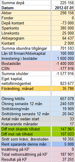 Jag gör ju hela tiden antaganden för hur långt jag har kommit i mitt oberoende av en förvärvsinkomst. Här är den senaste överslagsräkningen.
