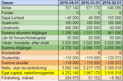 Månadsrapport, mars 2016