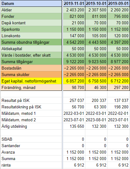 En månad helt i linje med planen. Värdepapprena gick okej. Inkomsterna var det nya normala, nästan 90 000 efter skatt. Utgifterna på ca 45 000.