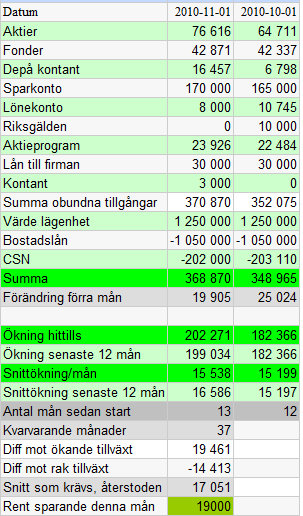 Förmögenheten ligger på 651 000 och månadsökningen var 18 000.
