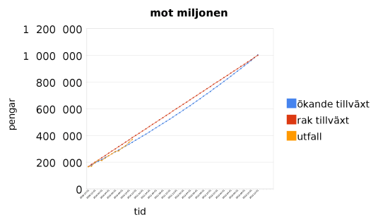 Jag ligger före målplanens kurva med 113 000 och enligt den anpassade kurvan ska jag nå första miljonen i januari 2013, elva månader före planen.